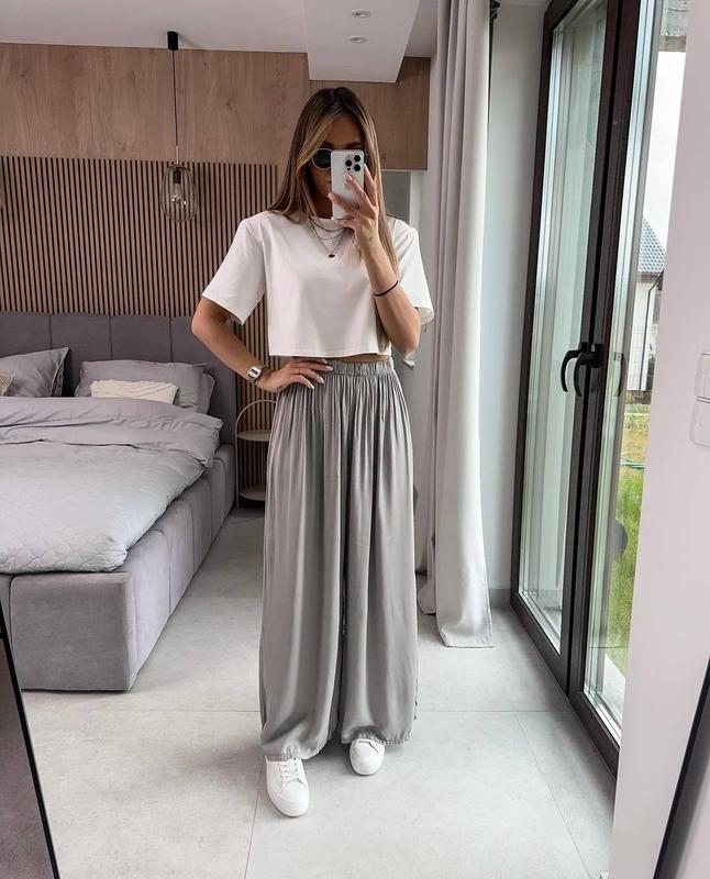 🌴Штани палаццо нова ціна 395грн Кольори: - св сірий - темно-сірий - чорний - шоколад ➡️Мод. 1374 ➡️Тканина: щільний софт (Premium) ➡️Розміри: 42, 44, 46, 48 ‼️Найкращі ціни, новинки. код30-1655(ТБеФ)