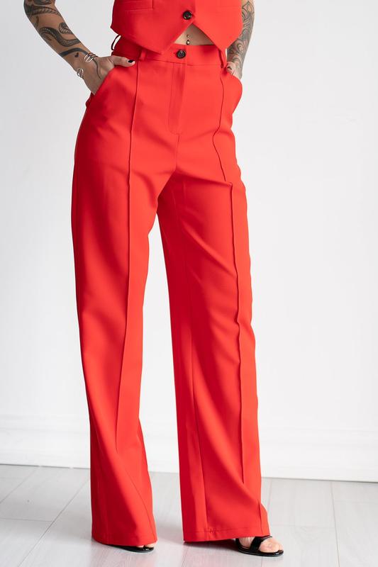 Красные брюки со стрелками приталенные брюки с высокой посадкой