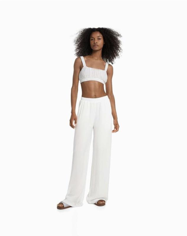 Легкі широкі штани bershka, розмір xs, просвітляються, знизу підкладка шортиками пот 29 (резинка, тягнеться) поб 54 довжина 110/82