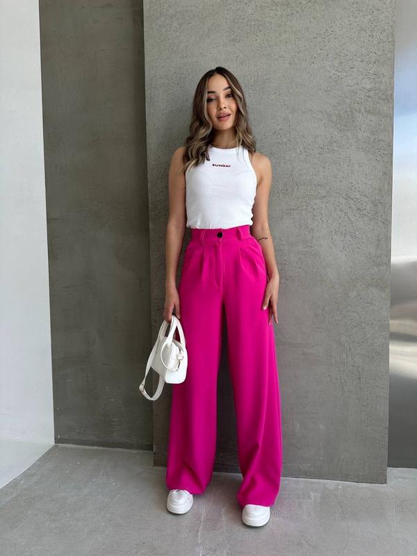🔸Брюки палаццо ▪️Модель: 1547 ▪️Ткань: летняя костюмка LUX ▪️Размер: 42-44; 46-48 ▪️Цвет: черный, белый, розовый, графитовый, свет бежевый 🏷Цена: 510 грн🔥 Супер качество по низкой цене🔥 💬 Твои идеальные брюки палаццо🔝 Клеш от бедра👍Надвисока посадка. Дорога премиальная ткань. Качественный пошив!!️