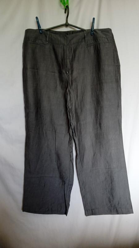 красивые брюки,44%лен,44%вискоза,цвет великолепный серый, длина100,крок71,ширина штанины внизу27,пояс полуобхват48,бедра66 тянется70,