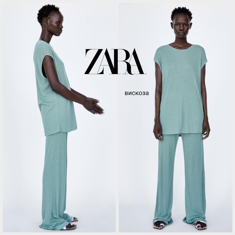 Очень крутые штанишки в рубчик от Zara, легкие нежно голубого цвета, размер М но подойдут и на Л.