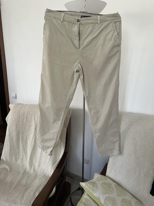 Длина-98, полуобхват талии-44, бедер-60, брючины верх-31, низ-18, хлопок.