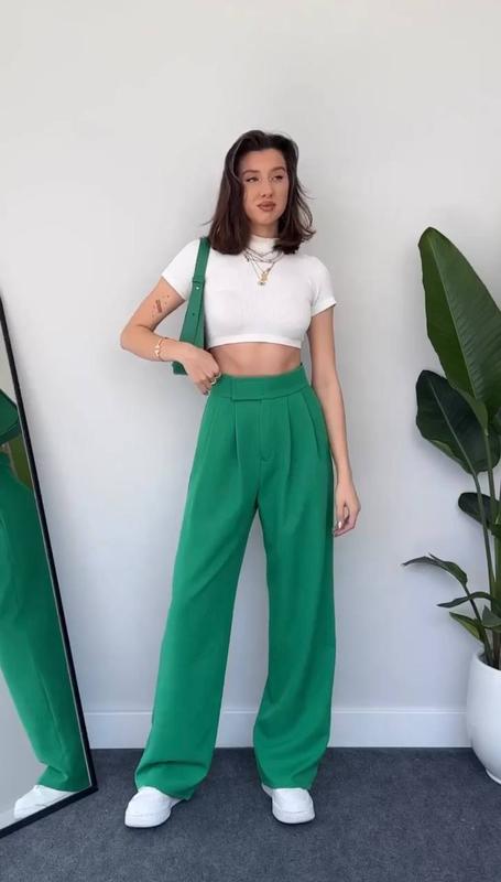 42-44, 46-48 Цвет: бежевый, черный, зеленый, серый, малиновый Тканина: костюмка Брюки классические на высокой талии, но в самое серденько, имеют стиль палаццо, свободные, невероятно легко совместить разными стилями взятия, верхней одежды, классическими блазками, топами и худи. Застегивается в поясе на липучку, пуговица уж точно не оторвется в самый не удобный момент.