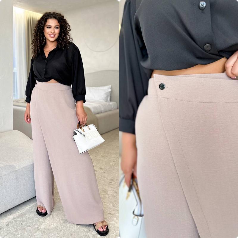 Модные брюки палаццо с эффектом запаха. Широкі, зручні! По талии сзади резинка. Материал лекгий, на лето супер 🌞🌞🌞 Мод.318 Цена 🇺🇦 720 грн Размеры : 48-50,52-54,56-58 Ткань: жатка которая дышит Цвет: черный, красный, мокро.инсп
