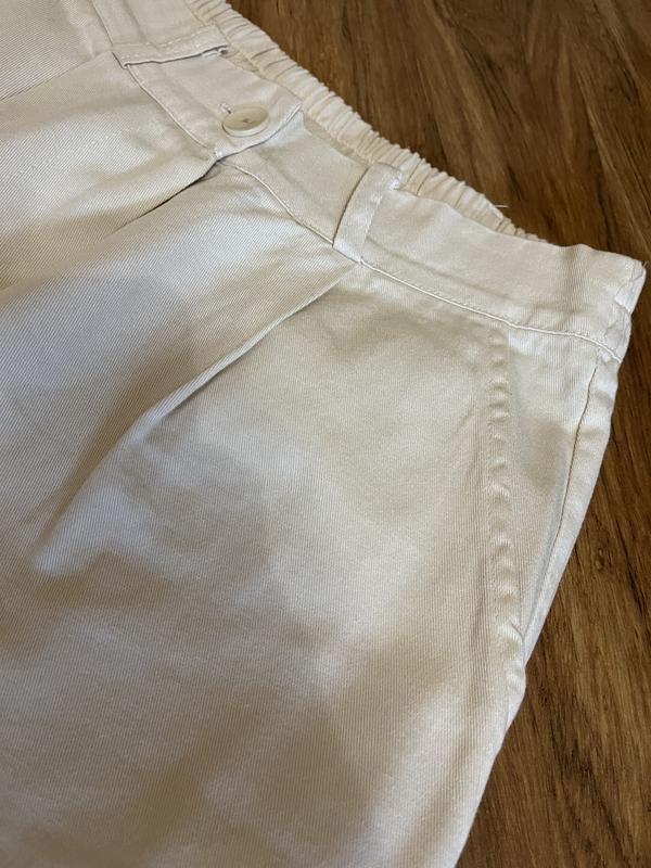 Брюки коттоновые. Тонкий котон. Цвет беж. Сзади есть резинка ( легко растягивается). Размеры: длина- 98см, Обхват бедер-114см, обхват талии-76, резинка тянется, возможен больший размер по талии. Выглядят как Момы. На размер 40-42 могут быть