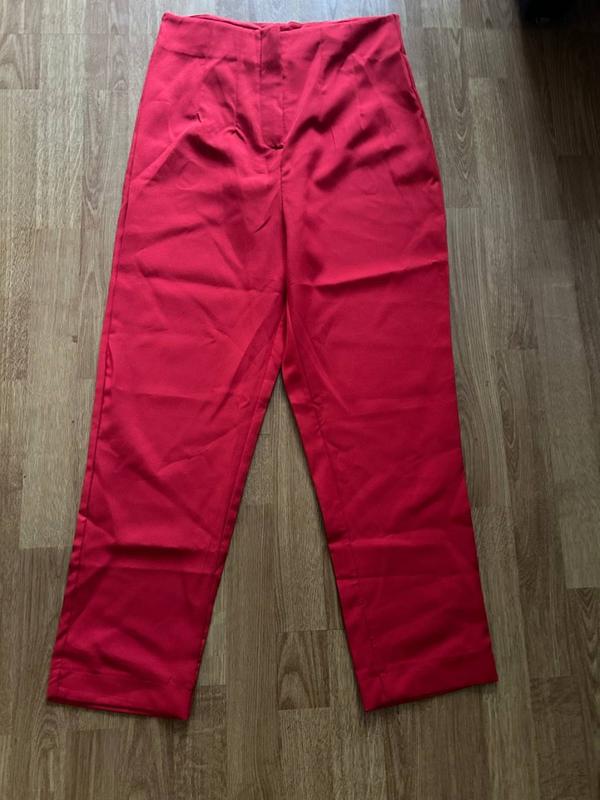 брюки классического кроя в ярком красном цветеПОТ- 38 см,ПОБ -56 см, длина от талии -98 см, по внутреннему шву -66 см