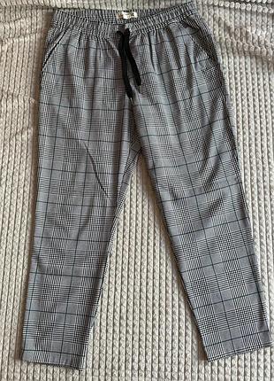 Брюки в клеточку. Размер 42. Состав 66% полиэстер, 32% вискоза, 2% эластан. Длина по внутреннему шву 67 см, по внешнему 94 см. Талия 41 см.