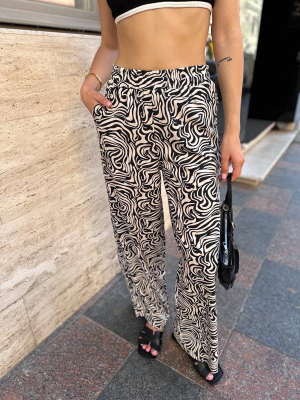 Брюки из софта – тренд сезона, сочетающий стиль и комфорт. Мягкий материал обеспечивает удобство в течение всего дня, а современный крой подходит для любых случаев. Особенно актуальны брюки с принтами Они добавляют индивидуальности и легко комбинируются с разной одеждой. Легкие в уходе, эти брюки станут любимой частью вашего гардероба. Штаны на резинке и с боковыми карманами 🖇️Модель 1832 🖇️Тканина софт 🖇️Размер 42-44;46-48 🖇️Цвет беж(пальмочка),зебра,лео,та черный (листочки) 🖇️Цена 440 грн