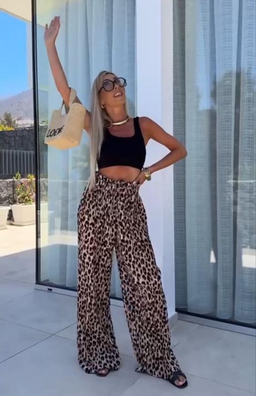 Штани Модель - 405 Ткань - штапель Турция Цвет - леопард Размер – универсальный (42-48) Цена - 600 грн Брюки свободного кроя, в самом трендовой расцветке, выполнены из натуральной ткани, не весомы, не парят.