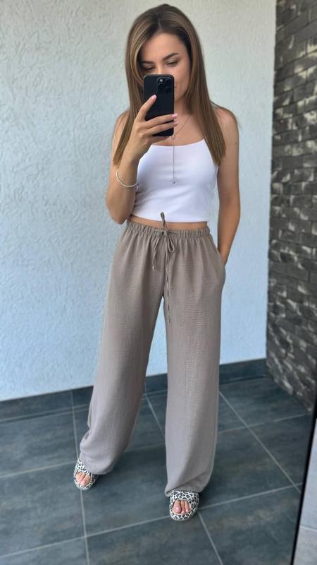 Штани Арт 57 har Тканина льон бохо Цвет графит, мокко, хаки, джинс Размер 42,44,46,48,50,52 Брюки свободного кроя, с карманами, талия на резинке, средняя посадка. Ткань приятная к телу, не парит!