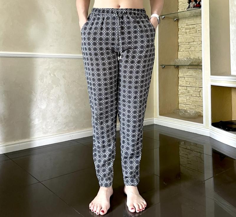 Брюки з легкоЇ (як повітря) тканини з кишенями New look. Розмір 10/38;165/72 А. Фото на моделі з розміром S. Довжина 97, внутр 70 см. ПОТ 37-53 см. ПОС 54 тягнуться до 60 см. Посадка 33/30 см.