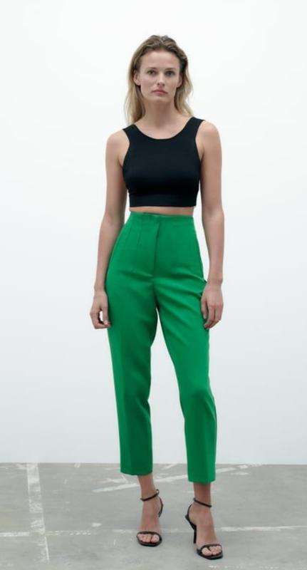 🌿зеленые брюки от Zara высокой посадки с боковыми карманами, ткань красиво держит форму Размер:М Замеры:ПО талии 34 см, ПО бедер 51 см, длина 98 см