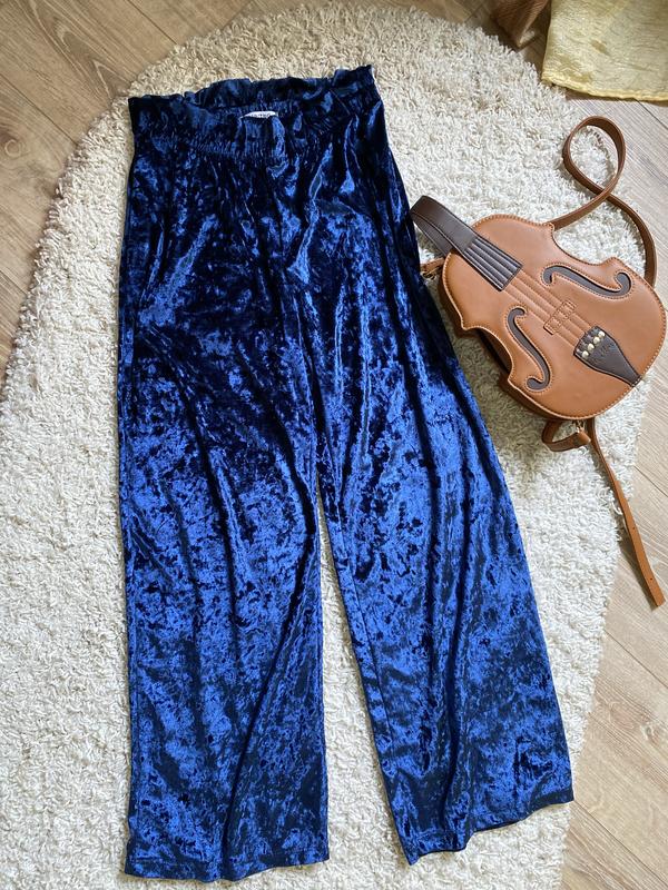 Велюровые брюки, синие красиво тагнутся, приятные к телу размер s-м