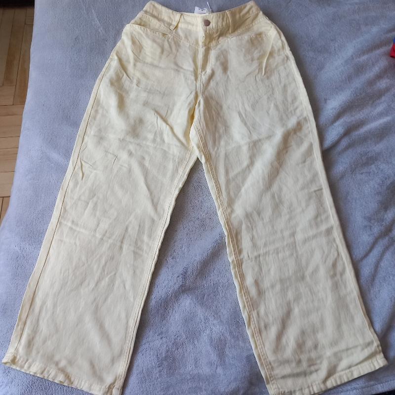 Состав лиоцелл/лен- шикарный для лета Цвет нежно желтый (как на фото с замерами) Размер 40 Высокая посадка, красивое оформление талии