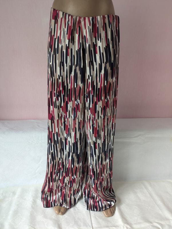 Брюки изготовлены из легкого летающего материала, приятного на ощупь. Производство - Италия. Талия на резинке 80 см, тянется до 88 см. ПОС - 50 см. Длина - 103 см. По шинту есть ниточки.