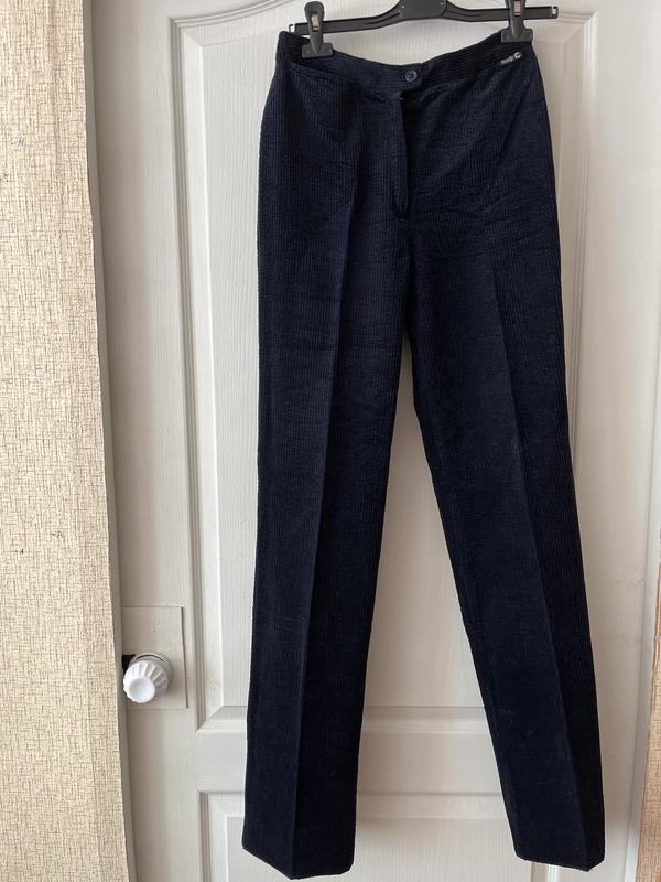 Вильвет, темно-синий цвет, ткань плотная, не тоненькая, длина 112см, пот 35см, поб 45см, выглядят супер, высокая посадка