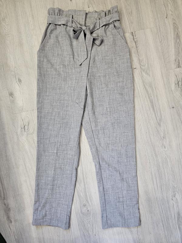Серые брюки H&M Размер: EUR 42 Материал: 87%полиэстер 8% вискоза,5% эластан, отлично подойдут на жаркое лето Талия на резинке,трешки тянется,поясок снимается Карманы боковые НОТ 36 ПОСТ 47 Длина 102 см