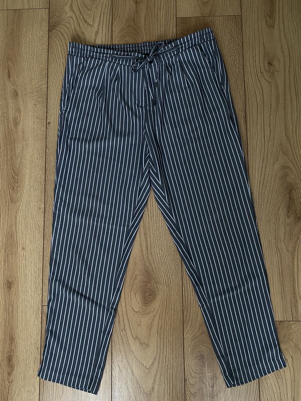Легенькі сірі брюки в білу смужку Пояс 45 Посадка 30 Стегна 55 Довжина 91