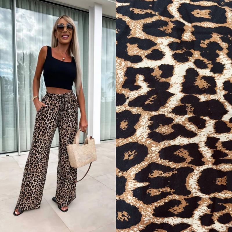 Штани 😍 ✅Модель:220 ✅Ткань: штапель-Турция ✅Размер:42-46, 48-52. ✅Цвет: принт Leo. Стильные свободные брюки с высокой посадкой, талия на резинке, очень легкие и невесомые💫 Ткань натуральная идеальный вариант для всех случаев.