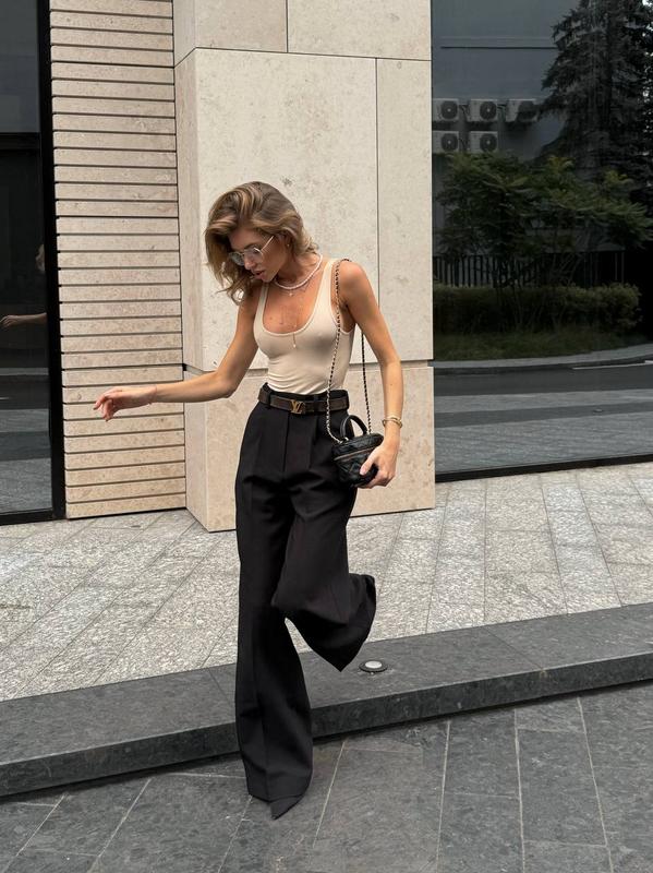 Брюки "Оскар" Размер: XS, S, M, L Ткань: костюмный креп (68% вискоза, 30% полиэстер, 2% эластан) Цвет: черный, молоко Уход: ручная стирка до 30° Производство: Украина _________________________ Длина внутреннего шва 83 см Длина внешнего шва 113 см