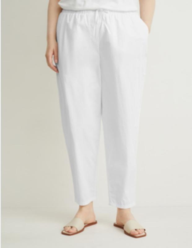 Льняные широкие брюки большого размера на резинке с двумя карманами. Замеры: ПОТ-68(макс.79) ПОБ-81 Посадка-43 Длина шерсть.шва-109 Довжина внутр.шва-75 Ширина штанки внизу - 30