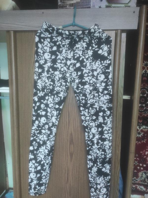 брюки или лосины черного цвета с белыми узорами в виде цветов