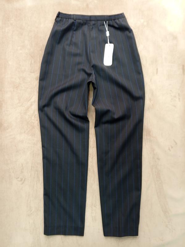 Size : 38 - в поясе 35*2 - посадка 34/36 - бедра до 50*2 - длина изделия 106 ( 78 шаговый ) - Замочек сбоку + пуговица + вставки тугой резинки в поясе + лента с фиксатором к телу . подклад по задней части изделия Состояние нового изделия Отличная костюмная плотная ткань Цвет : воронье крыло + ярко синяя полоска Состав : 70% шерсть + 30% полиэстер ( подклад 70% вискоза + 30% полиэстер )