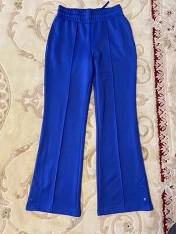 Классные плотные брюки из эластичной ткани, размер С указано, внизу две кнопки есть. Длина - 107см, внутрення - 79см, пояс - 36см ( до 49см тянется ), поб-53см ( до 58см тянется ), передняя посадка - 31см, задняя посадка - 43см,штанка - 26см.