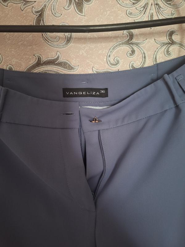 Класичні брюки, розмір 36. Блакитно-сірий колір. Вшивалися акуратно. Внизу є оздоблення резинкою. Якщо треба подробиці, то пишіть в особисті.