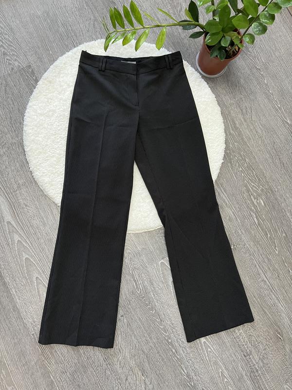 Тонкие брюки черного цвета с полоской. Размер 38 Длина 98см От 76см Об 96см Посадка 23 см Ширина штанки у верху 28см У низу 24см
