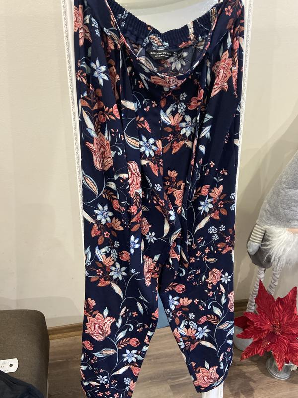 Брюки в цветочный принт, в низу манжет, есть карманы и пасок спереди, сзади на резинке, что позволяет увеличить талию. Поб -60, пот -46, длина от талии 105 см