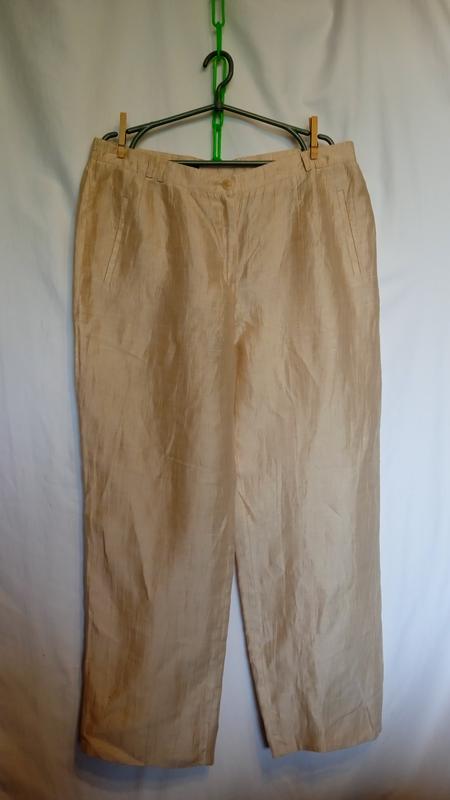 длина109,пояс полуобхват47 в спокойном тянется50,лен 86%у состава ткани,бедрапопа67-68, посадка44/31,ширина штанины внизу24,е карманы,