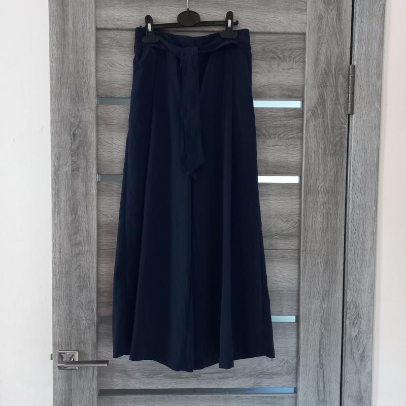 Талия 38, тянется, остановка на резинке, длина 90, бедра 53,. Есть два боковых кармана. Очень приятно ткань. Размер 34.