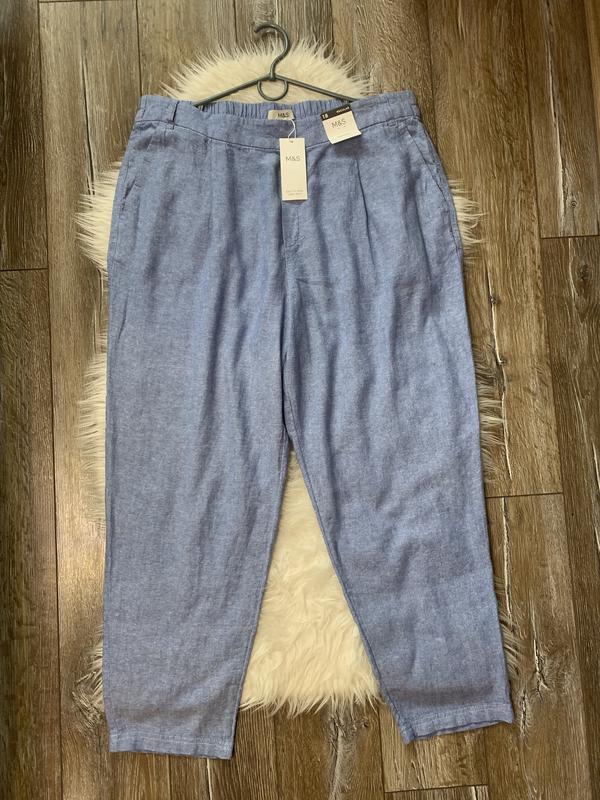 Льняные новые брюки M&S collection, размер 18 (46) Длина 1м Пот 46см, тянутся к 54 см, на поясе сзади резинка. Поб 63см Ширина внизу 18,5см замеры выполнены в свободном состоянии
