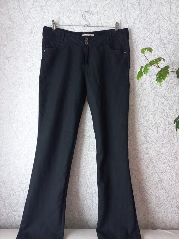 Прямые брюки с красивым составом ткани. Качественные, пуговицы брендированные, выглядят дорого, сидят красиво. Длина 104см, пот 44см, поб 54, ширина штанины 21,5. Цвет насыщенный черный