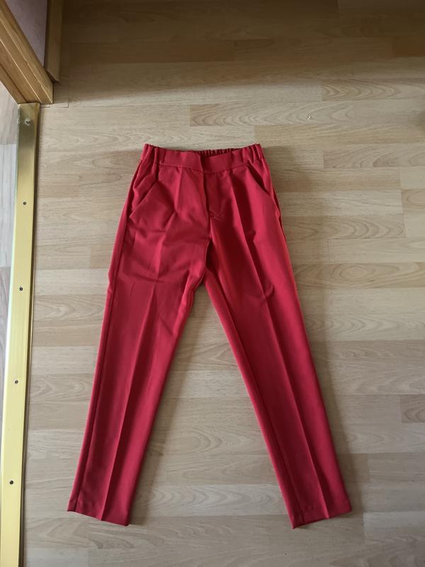 Женские брюки красные с карманами на резинке, что красиво подчеркивает фигуру Очень легкие, на лето идеально Длина 7/8