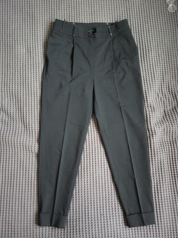 Зауженные брюки с интересным верхом и средней посадкой. Имеют боковые скрытые карманы, стрелки и манжеты внизу. ПОТ - 38 см ПОБ - 50 см. Трохи тягнуться.