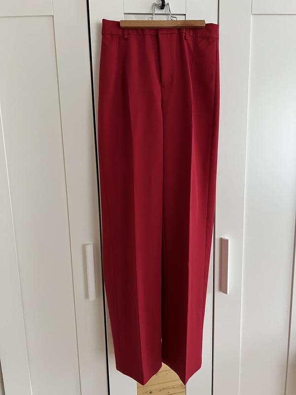 Девочки, отрываю от сердца эти классные брюки Mango размер 36❤️ Чрезвычайно красивые и приятные к телу Красный цвет, не яркие, цвет более приглушенный Брюки новые!!!! Ни разу не одевались (все для фото на теле) Купила для себя, но не угадала с размером Замеры Талия 35 Бедра 45 Длина 107 Ткань тянется, поэтому брюки садятся и на чуточку более крупные параметры Состав Полиэстер Вискоза Еластан