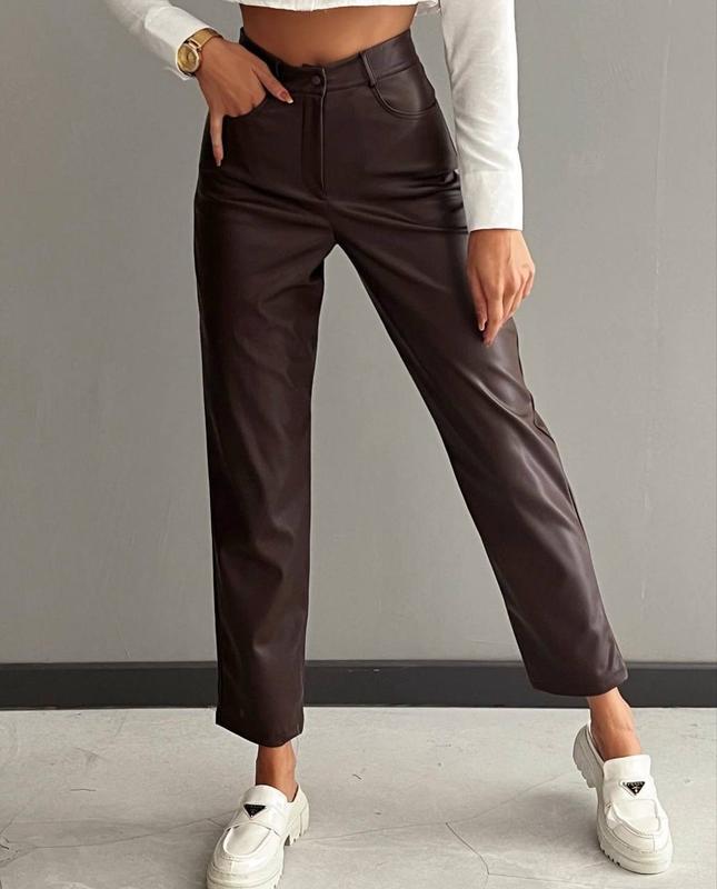 Штани 🔥Цвет: - черный - молоко - карамель - шоколад ➡️Мод. 1182 ➡️Размеры: 42-44, 44-46 ➡️Ткань: экокожа ➡️Длина изделия 96см Первый размер ОС до 92см Второй размер ОС до 101см По желанию ремень плюс 40грн