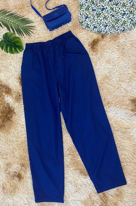 Свободного кроя. Объем талии 66-100 см Обʼєм стегон 126 см Длина по внешнему шву 107 см По внутреннему 75 см Высота посадки 34 см