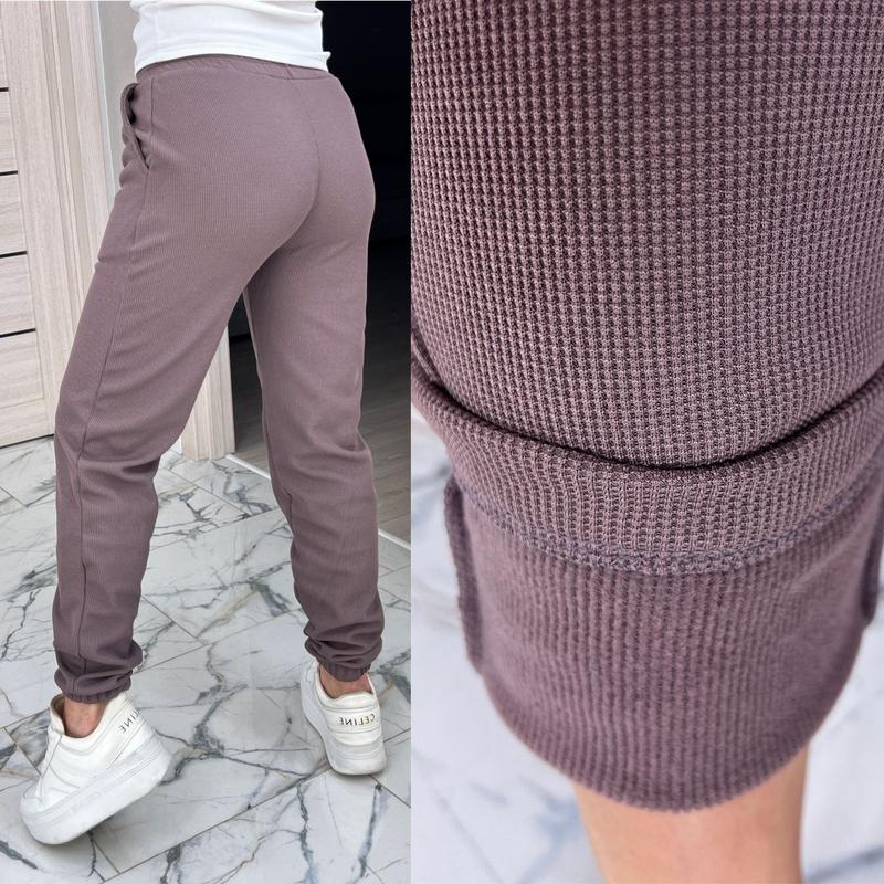 Джогери вафелька Рабочие карманы, талия на резинке. Низ брюк на резинке. Материал: вафелька на флисе Красиво тянется. Приятная и мягкая к телу. Цвет: черный, графит, мокко Размеры: 42-44, 46-48, 50-52, 54-56 Замеры на последнем фото! Цена: 600 грн