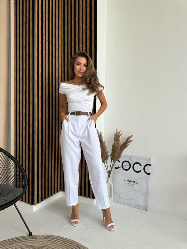 Брюки мод.1145-1365 тканина: креп костюмка размеры: 42-44, 46-48 цвета: черный, белый, свет серый, оливка Цена 590 Пояс в комплекті