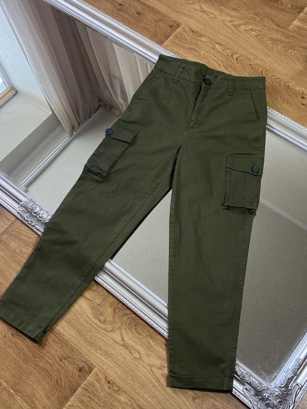 Брюки карго цвета хаки. Состояние очень хорошее. Имеет 4 функциональных кармана. Размер М. Замеры: пот 37, поб 48, длина 92.
