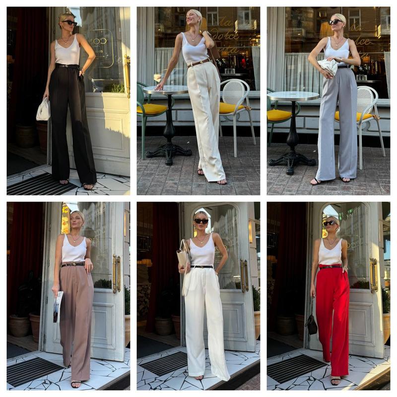 Модель ka 741 Трендовые женские брюки палаццо Размерный ряд S,M,L,XL Ткань качественный костюмный креп Турция 🇹🇷 Цвета красный, белый, черный, беж, мокко и серый Брюки на молнии, сзади гибкая резинка, со шлевками, можно надевать под ремешок Базовая вещь в Вашем гардеробе, желательно надевать под любую обувь Супер качество