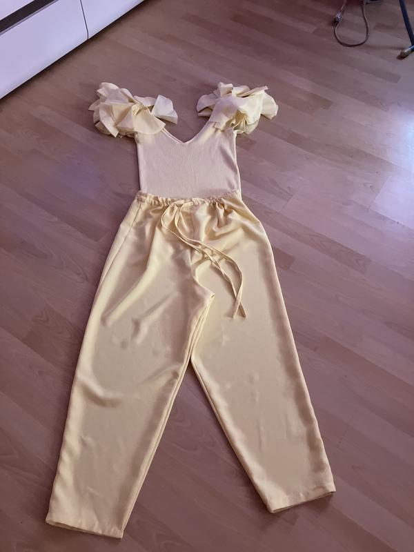 Продаются очень красивые брюки нежного желтого цвета, сзади на молне, на шнуре, что очень удобно, к ним идет майка с интересными перчатками,, красиво тянется, смотрится очень классно