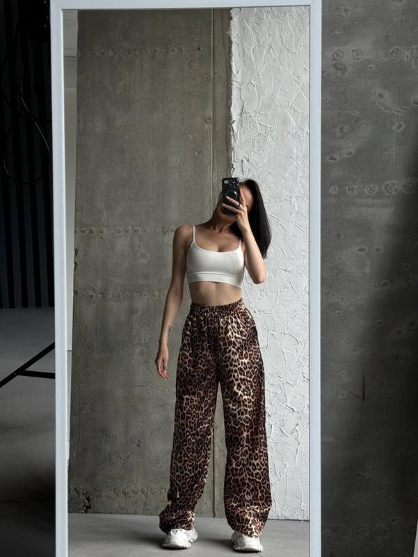 🐆штаны лео,цей принт влюбляет в себя 🫶 ⚜️мод.582 ⚜️тканина шовк- сатин качество 🔥 ⚜️размер. 42-44. 46-48 ⚜️цвет.лео ⚜️ціна. 1150 грн Замеры. талия 60-84. 68-90 стегна 122. 136 длина 110. 111