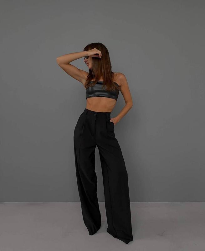 🖤 NEW 🖤 брюки ▪️мод an 190 ▪️тканина : костюмка ▪️цвет: графит, черный, беж ▪️СМ; МЛ брюки палаццо; Очень стильные брюки на высокой посадке, клеш от бедра; выполнены из качественной ткани;😍 Длина брюк 110 см Размеры SM <unk> ML Талия: 60-66см <unk> 65-73 см Стегна : 88-94 см | 95-99 см