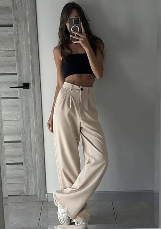 🔸Брюки палаццо ▪️Модель: 1547 ▪️Тканина: літня костюмка LUX ▪️Розмір: 42-44; 46-48 ▪️Колір: чорний, білий, рожевий, графітовий, світло-бежевий Суперякість за низькою ціною🔥 💬 Твої ідеальні штани палаццо🔝 Клеш от бедра👍Надвисока посадка. Дорога преміальна тканина. Якісне пошиття!️ ЗАМІРИ: 42-44 / 46-48 ОТ 62 см / 70 см ОС 102 см / 110 см Довжина 83; 115 см / 83; 115 см Код: 1547(син824