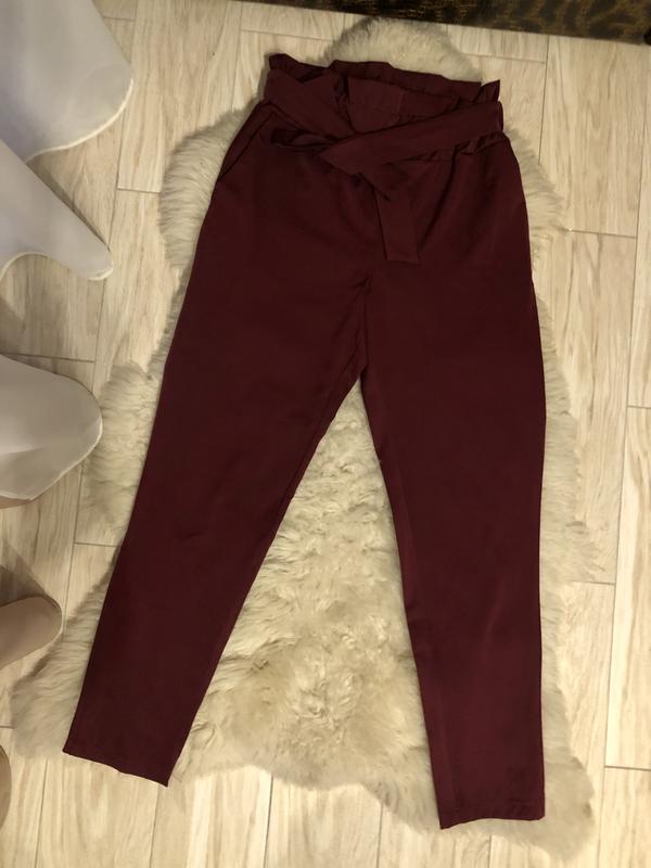 Брюки бордовые на резинке и завязке. Длина укороченная (не 3/4). Размер s. Стан - идеальный